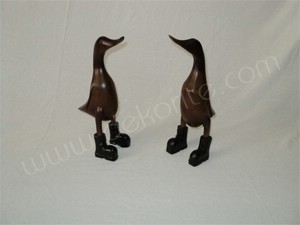 Dekoratif ve hediyelik: Eskitme Ahþap Botlu Ýkili Ördek Figürü En: 9 cm Boy: 26 cm