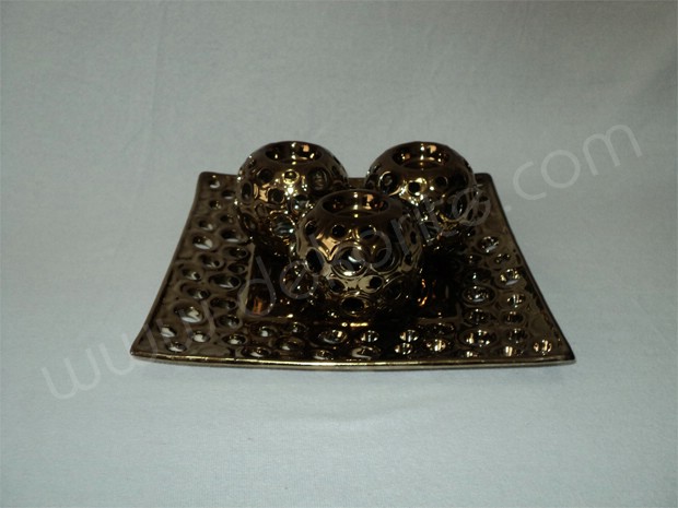 Dekoratif ve hediyelik: Uclu Metal Delikli Mumluk