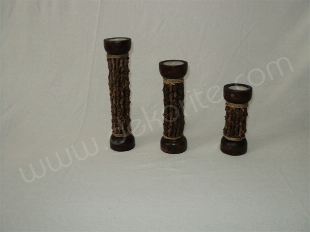 Dekoratif ve hediyelik: Ahþap Disi Tik Desenli Uclu Mumluk